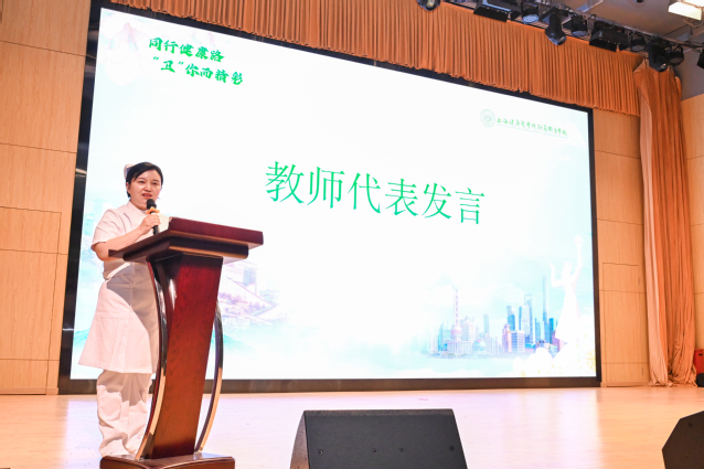 护理系主任石蕾作为学校教师代表发言。她在发言中谈到经过三年的刻苦学习,同学们已经具备了扎实的专业知识、娴熟的专业技能、爱伤护伤的仁心仁术,希望同学们能够在未来“乘长风破万里浪”,坦坦荡荡,走进社会,平平安安,走过未来。