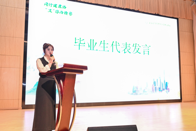 最后,汤磊代表学校向毕业生们送上了祝福,向悉心教导的老师们表示感谢。他寄语毕业生们:第一,怀揣梦想,努力拼搏实践,一定能在自己的人生中开辟出属于自己的天地。第二,日积跬步,奋斗行走千里。在日常生活的点点滴滴之中努力奋斗,就会充满快乐!第三,自信征途,勇担历史使命。希望大家把握时代脉搏、力争成为护理领域的杰出人才,为国家护理事业发展贡献青春力量。