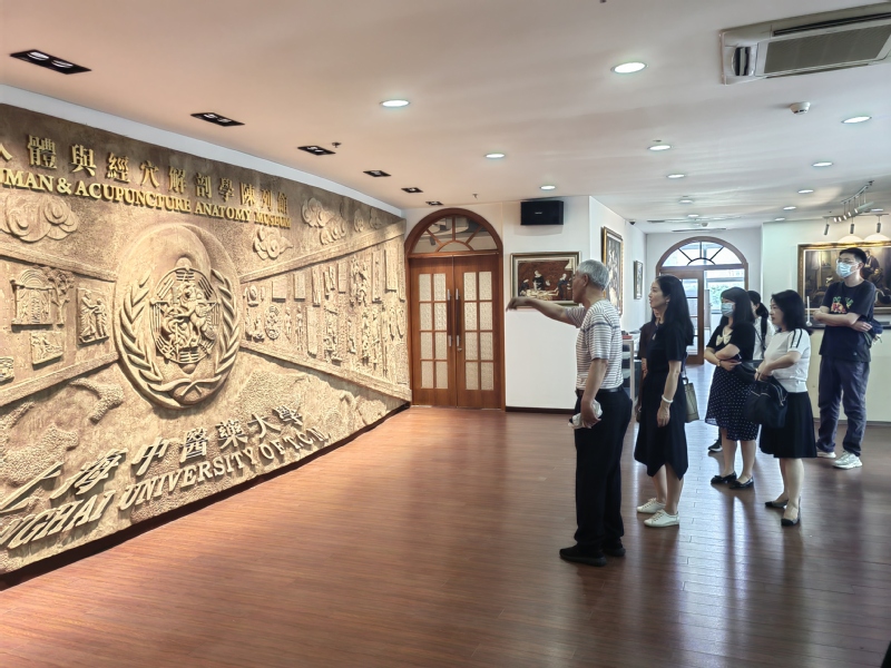 在张黎声教授的陪同下,全体教师实地参观考察了上海中医药大学人体与经穴解剖学陈列馆、解剖实验室、遗体捐献纪念园等区域,深刻感受了上海中医药大学中西医结合的课程特色以及无处不在的课程思政元素。