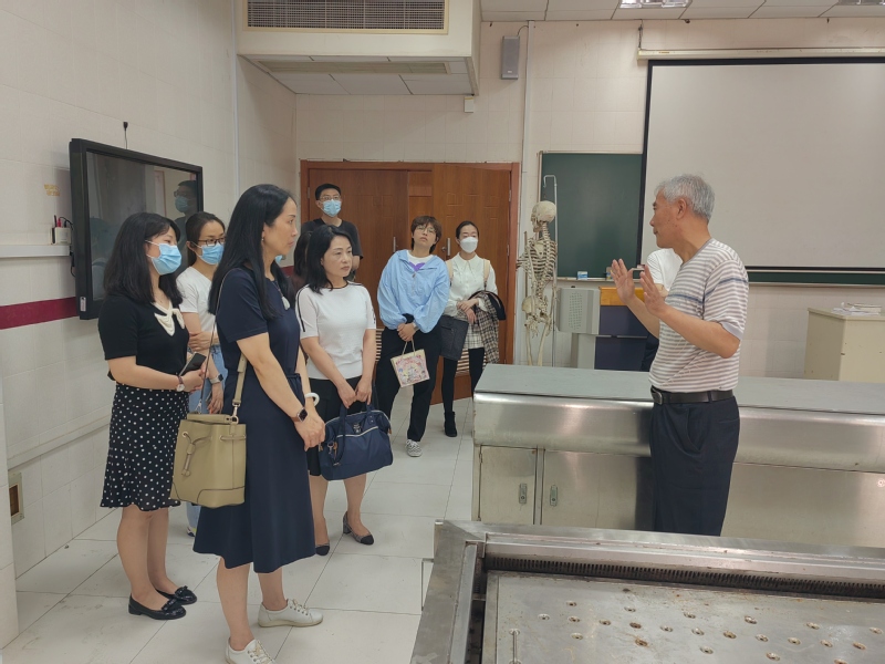 为深入开展学习贯彻习近平新时代中国特色社会主义思想主题教育,扎实推进上海健康护理职业学院(筹)医学基础实训中心建设及“正常人体结构与功能”课程思政建设工作,5月30日下午,我校徐敏副校长率医学基础教学部全体教师,邀质量管理与教学建设中心、教务科相关教师共同前往上海中医药大学开展相关调查研究及学习交流。上海中医药大学张黎声教授盛情接待,全程陪同。