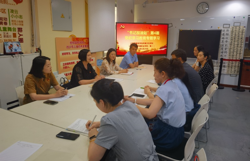 为持续深入开展党纪学习教育,6月28日下午,2024年第四期“书记加油站”暨党纪学习教育专题学习会在凌云街道拾艺汇顺利举行,学校全体党总支委员,各党支部书记及上届党总支委员顾春娟、朱彩英出席。