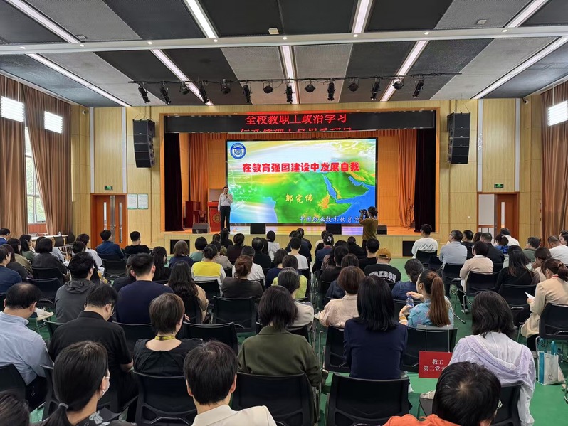邬校长围绕“为什么习近平总书记要提出‘教育强国战略’”“为什么职业教育‘前途广阔,大有可为’”“为什么教育数字化是‘新赛道新优势’”“教育强国建设中自我发展的思考”四个方面进行阐释。三个问题、一个思考,环环相扣,层层递进,见解卓越,畅达简明。