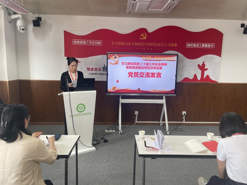 会议开始,教工第一党支部书记朱彩英强调了党的二十届三中全会所具有的继往开来的里程碑意义,它不仅是党的十八届三中全会以来全面深化改革的实践续篇,也是新征程推进中国式现代化的时代新篇,并领学党的二十届三中全会关于全面推进深化改革的指导思想、七个聚焦总目标、六个必然要求、六项原则以及系统部署内容及新概念解读等,要求党员教师充分认识教师自身担负的教书育人和文化传播的使命,以身作则,身为表率,影响身边人和学生,结合当前新形势新任务,积极投入到各项技术能力的基础培训中,学习掌握数智技术,为学校转型改革发展做好各项能力储备和心理准备。