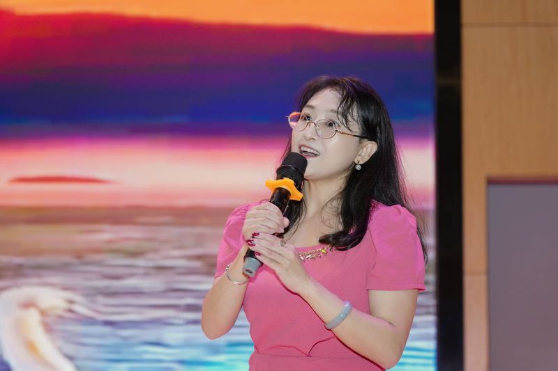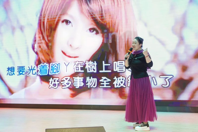 继而,吴侃老师的《My Love》以浪漫温馨的旋律和出色的英文发音展现了国际视野。紧接着,陈慧勤老师带来的《挪威的森林》如一阵清新的北欧气息,空灵的嗓音彰显深厚功底。随后,卢丽琼老师的《梦里水乡》宛如一幅徐徐展开的江南水墨画,悠扬婉转。