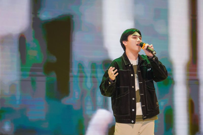 比赛渐入佳境,许敏老师用慷慨激昂的《精忠报国》激发全场爱国热情,雄浑的歌声让人热血沸腾。接下来,廖凯旋老师深情演绎的《雨天》如一幅水墨画,细腻动人。紧随其后,黄婉秋老师温暖人心的《小美满》仿佛一缕阳光照进每个人的心房。