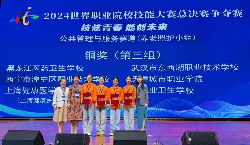 2024年10月27日至31日,2024年世界职业院校技能大赛总决赛公共管理与服务赛道(养老照护小组)在云南省昆明市隆重举行。此次赛事吸引了来自全国各地的64支参赛队伍、233名选手齐聚一堂,展开了激烈的技能角逐。我校选手吴心怡、郭君诺、罗邵垚和朱丽凭借团结协作和沉着应对,荣获铜奖。