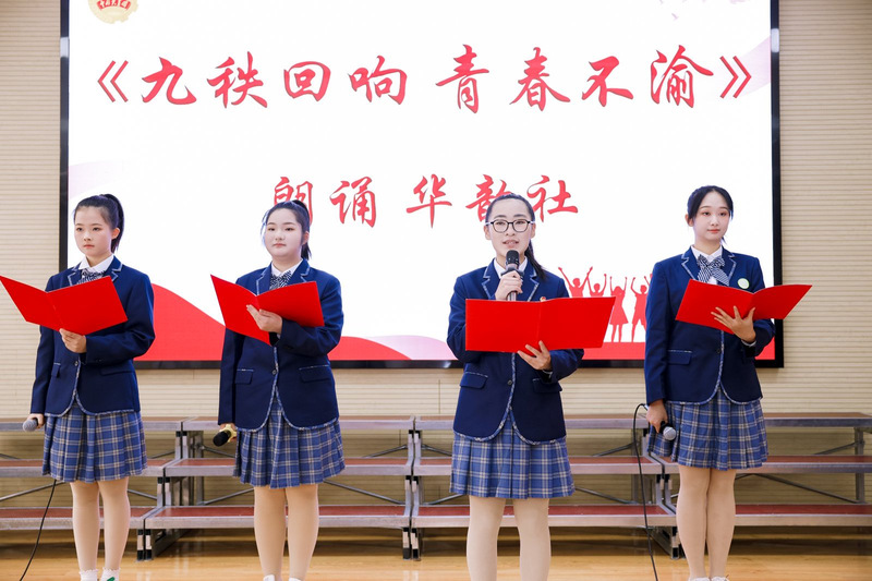 红歌会在华韵社朗诵《九秩回响青春不渝》中拉开序幕。同学们深情回溯一二·九运动那段波澜壮阔的岁月,声声铿锵、字字含情,表达对先辈的无限崇敬,为整场活动奠定了庄严而激昂的情感基调。