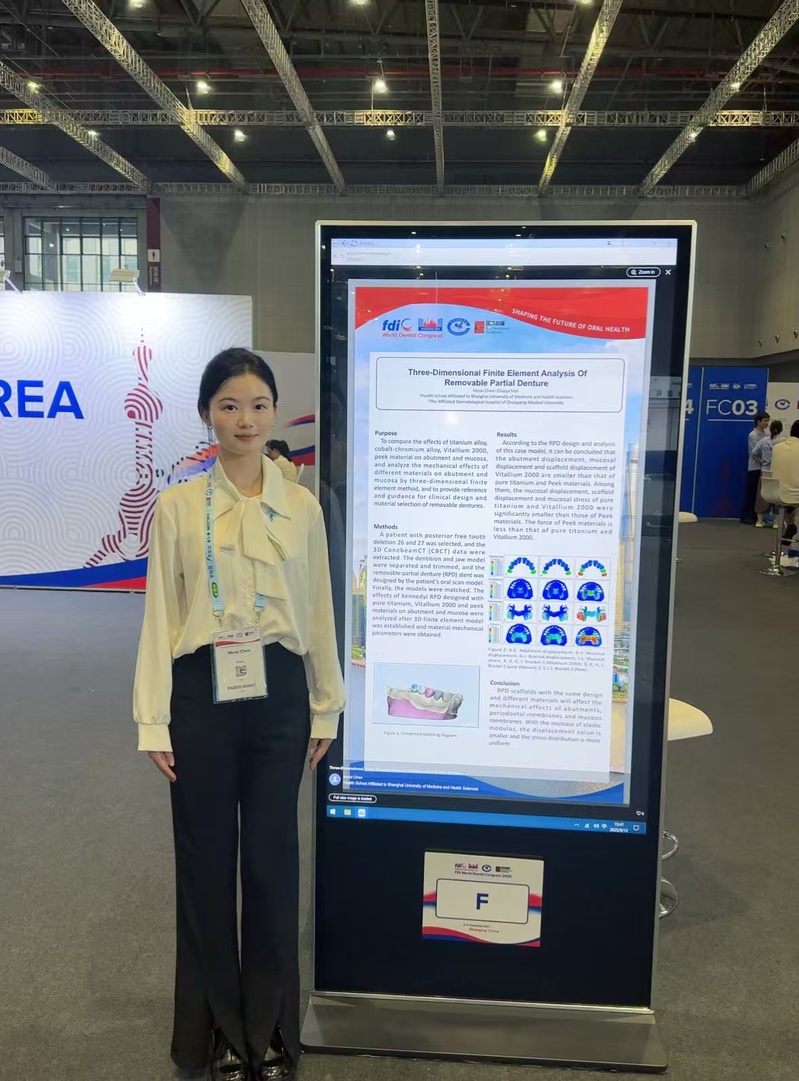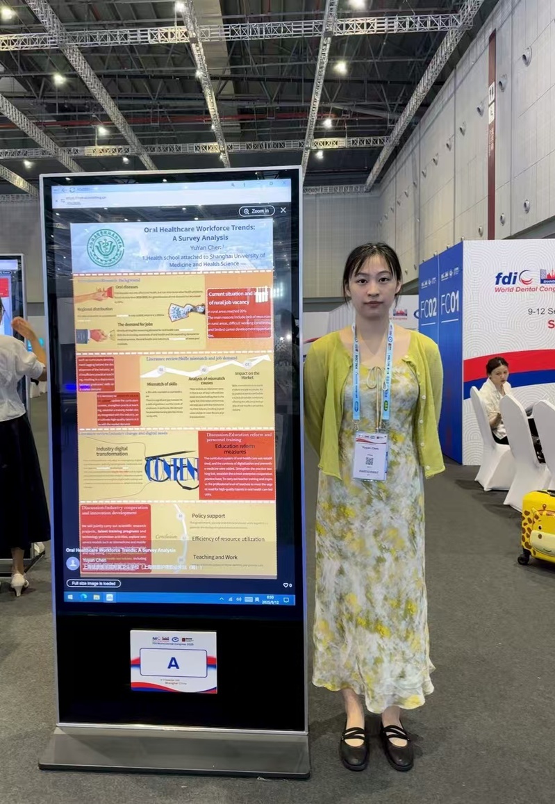 我校口腔药学系的陈雨嫣和陈美西老师参加了此次大会,并进行了交流展示。两位教师投稿的英文摘要凭借扎实的研究内容和创新的学术观点,成功被FDI大会接收,并在大会现场进行了全英文壁报汇报及交流。在汇报过程中,她们以清晰的逻辑、流畅的表达,向来自世界各地的口腔医学专家和学者详细阐述了研究的背景、目的、方法、结果与结论。她们的研究成果聚焦于口腔领域的关键问题,具有重要的理论意义和实践价值,引发了现场同行的浓厚兴趣和热烈讨论。众多参会者纷纷驻足观看壁报展示,并就相关问题与两位老师展开深入交流,其研究成果的先进性与创新性赢得了参会专家的肯定。