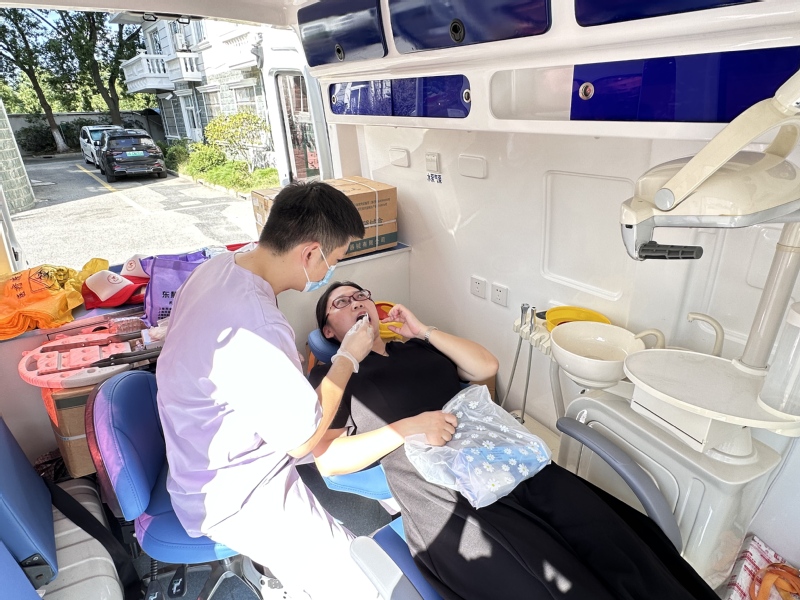 上海东慧口腔医院的口腔义诊车驶进校园,为全校教师提供口腔检查与咨询。专业的医护团队耐心询问每位教师的口腔状况,针对常见问题如牙龈出血、牙列不齐等进行初步诊断,并结合个体情况给出相关的治疗方案和建议,切实为教师的口腔健康保驾护航。