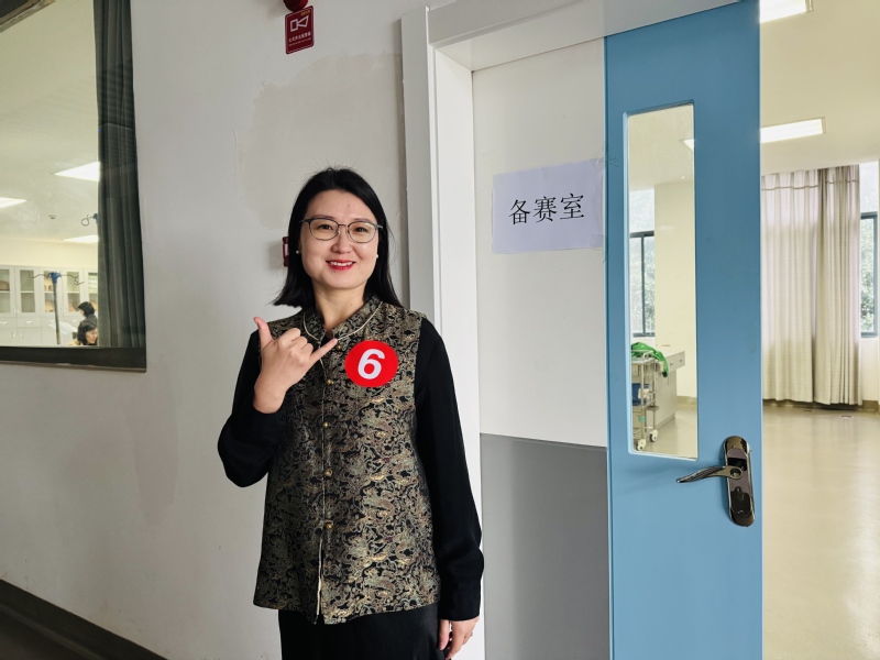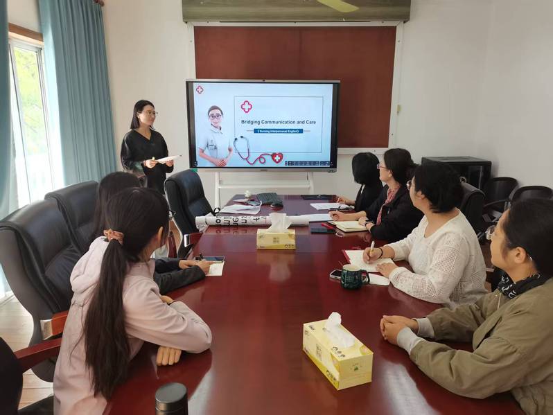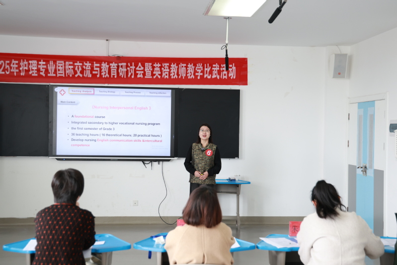 教学比武环节以现场全英文说课形式开展,是对教师教学能力与国际素养的综合考验。杨丽丽老师以护理人际英语课程“Bridging Communication and Care”为题展开说课,凭借精准的学情分析、清晰的教学目标、创新的教学设计,巧妙融合信息技术赋能教学,并以流利生动的英文表达展现其教学魅力,最终在激烈竞争中赢得评委一致好评。