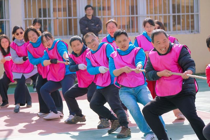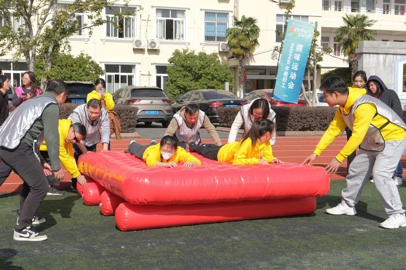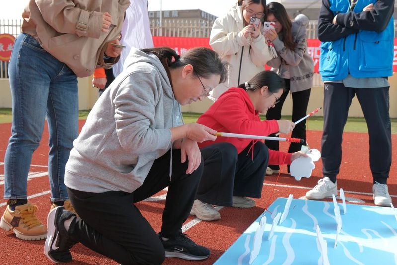 赛场上,个人项目精彩纷呈,“精准投掷”比拼专注,“指压板跳绳”挑战极限,“旱地钓鱼”尽显技巧,欢声笑语此起彼伏。真正的较量在集体项目中进入白热化。6支参赛队伍的教职工个个摩拳擦掌、全力以赴,为了集体荣誉团结协作、勇争第一。在“车轮滚滚”与“拼图达人”环节,队员们默契配合,既比拼速度技巧,更考验战术执行。每一次精准的传递与拼接,不仅是智慧的博弈,更是团队凝聚力的生动写照。