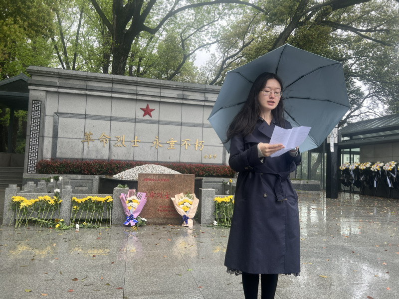 祭扫仪式上,党员教师翟雨佳、25护理中本1班单靓分别作代表发言,真挚表达对先烈的缅怀与敬意,诉说新时代教育工作者与青年学子勇担使命、奋勇争先的责任与担当。随后全场肃立默哀一分钟,以无声的敬意寄托对先烈的深切哀思。