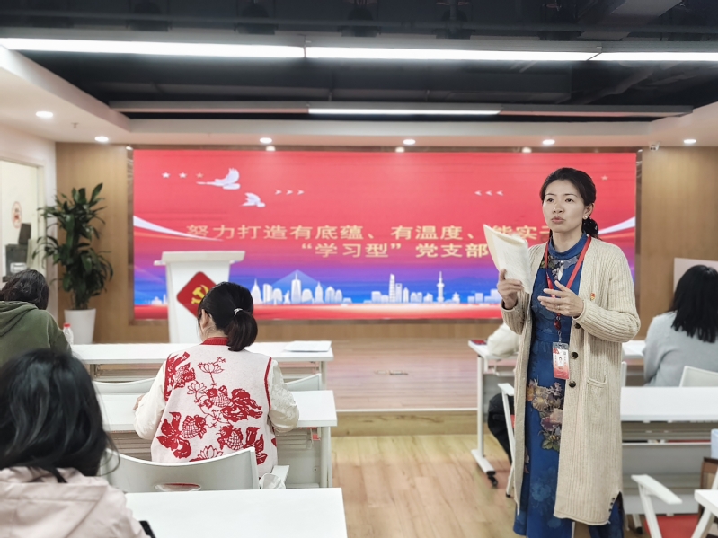 在交流发言环节,刘芹同志结合质量中心轮岗工作,提出要坚守教育初心,以师生利益为最高标准,杜绝形式主义;秦晓怡同志结合教学比赛经历,强调要脚踏实地、以生为本,将比赛经验转化为育人实效;入党积极分子谢莉莉同志分享了学习体会,并表达了向党组织靠拢、主动接受思想淬炼的坚定决心。