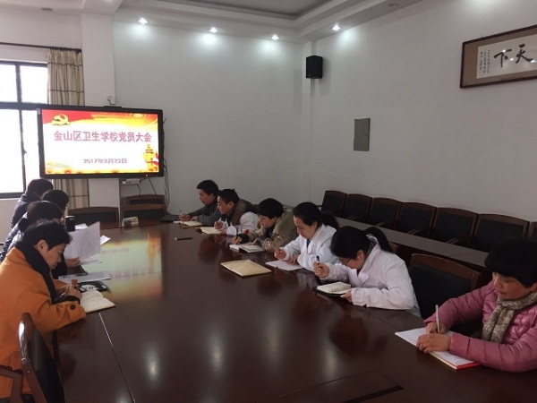 2月23日下午,金山区卫生学校党支部召开党员大会,布置专题组织生活会相关工作,讨论2017年党支部工作计划,集中学习《关于新形势下党内政治生活的若干准则》和《中国共产党党内监督条例》。